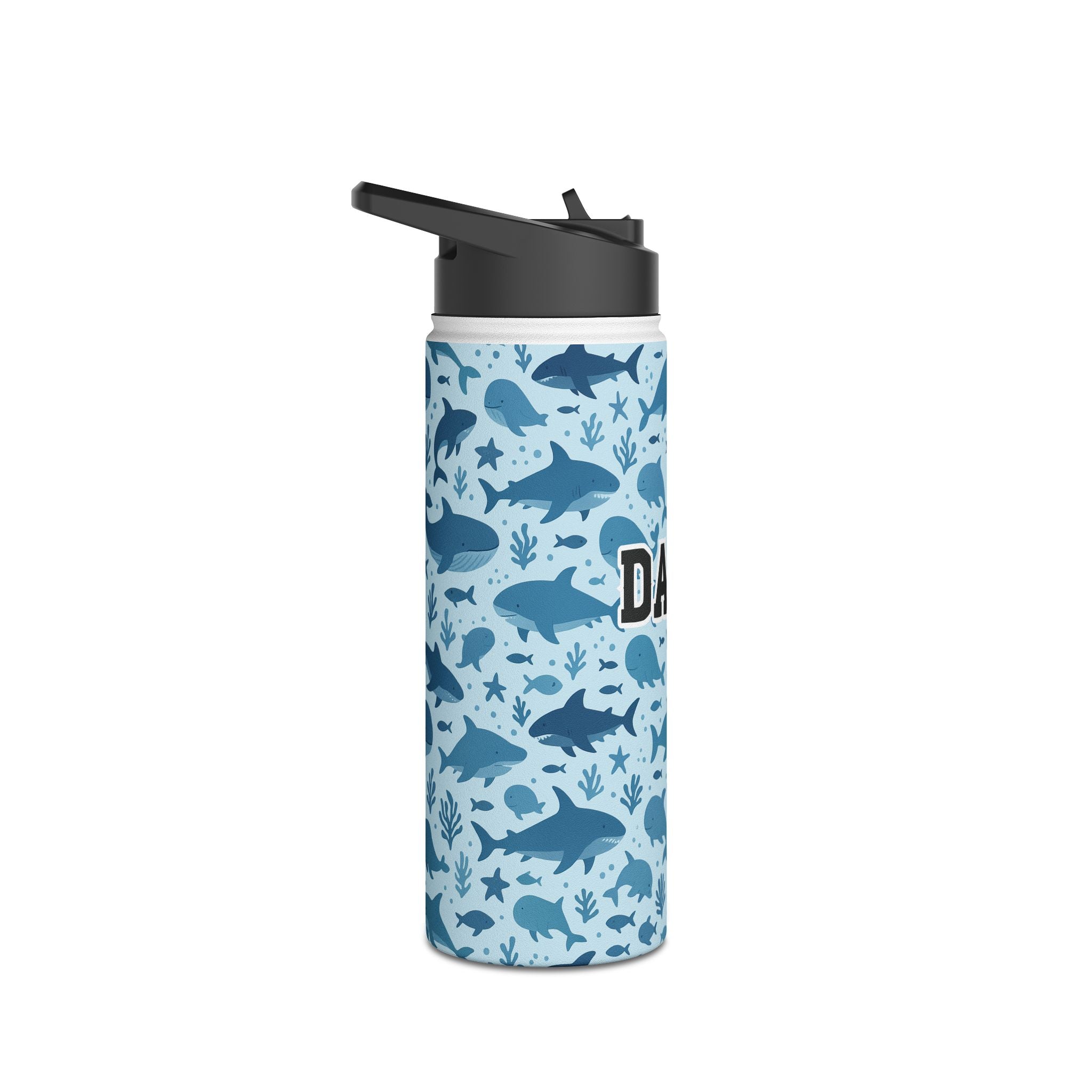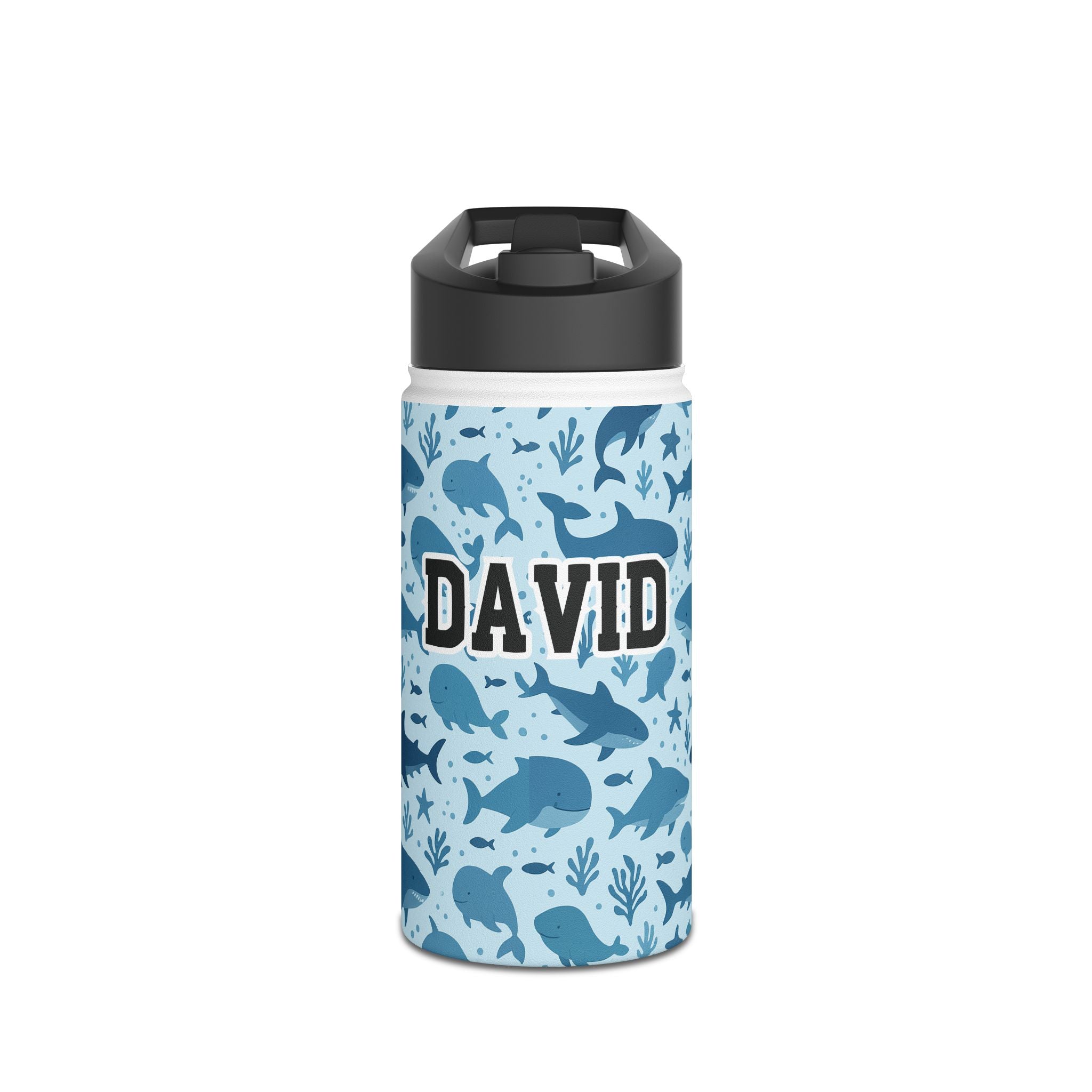 Stay hydrated in cosmic style with this personalized whales design water bottle, designed just for whale lovers. Featuring a whales and sharks design and custom name, this sporty and sleek water bottle makes the perfect gift for kids.