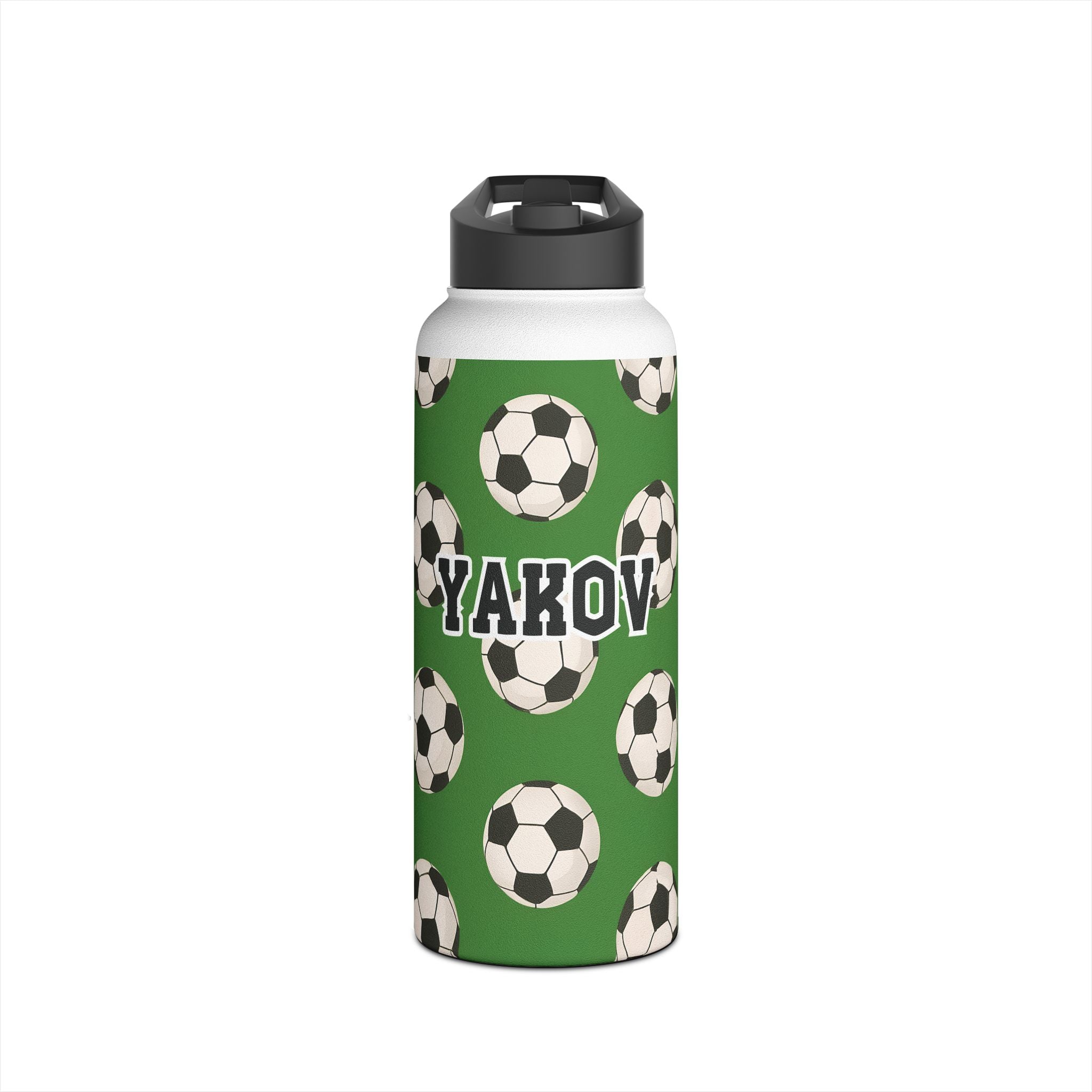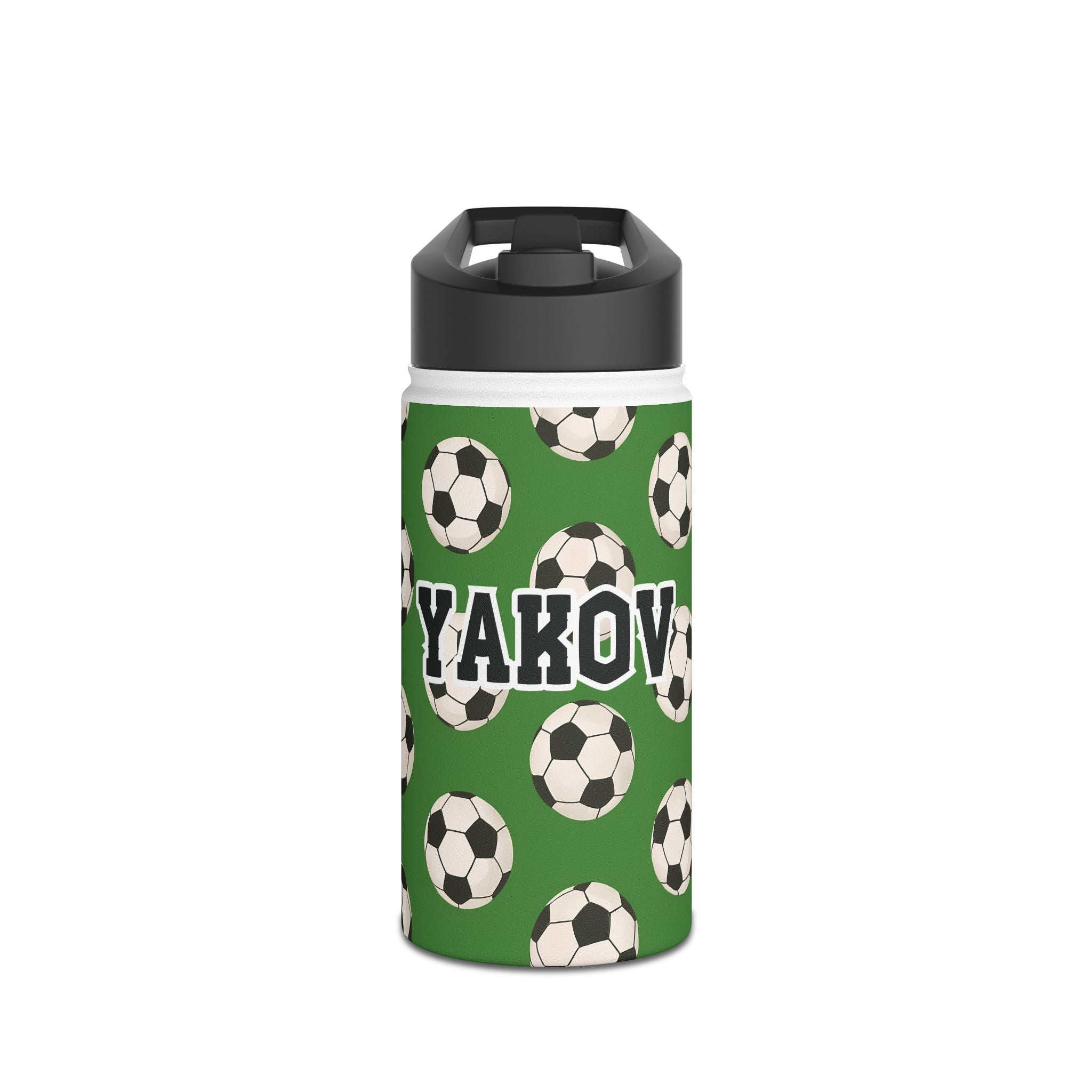 Stay hydrated in cosmic style with this personalized kids soccer ball design water bottle, designed just for soccer lovers. Featuring a cute soccer balls design and custom name, this sporty and sleek water bottle makes the perfect gift for kids.