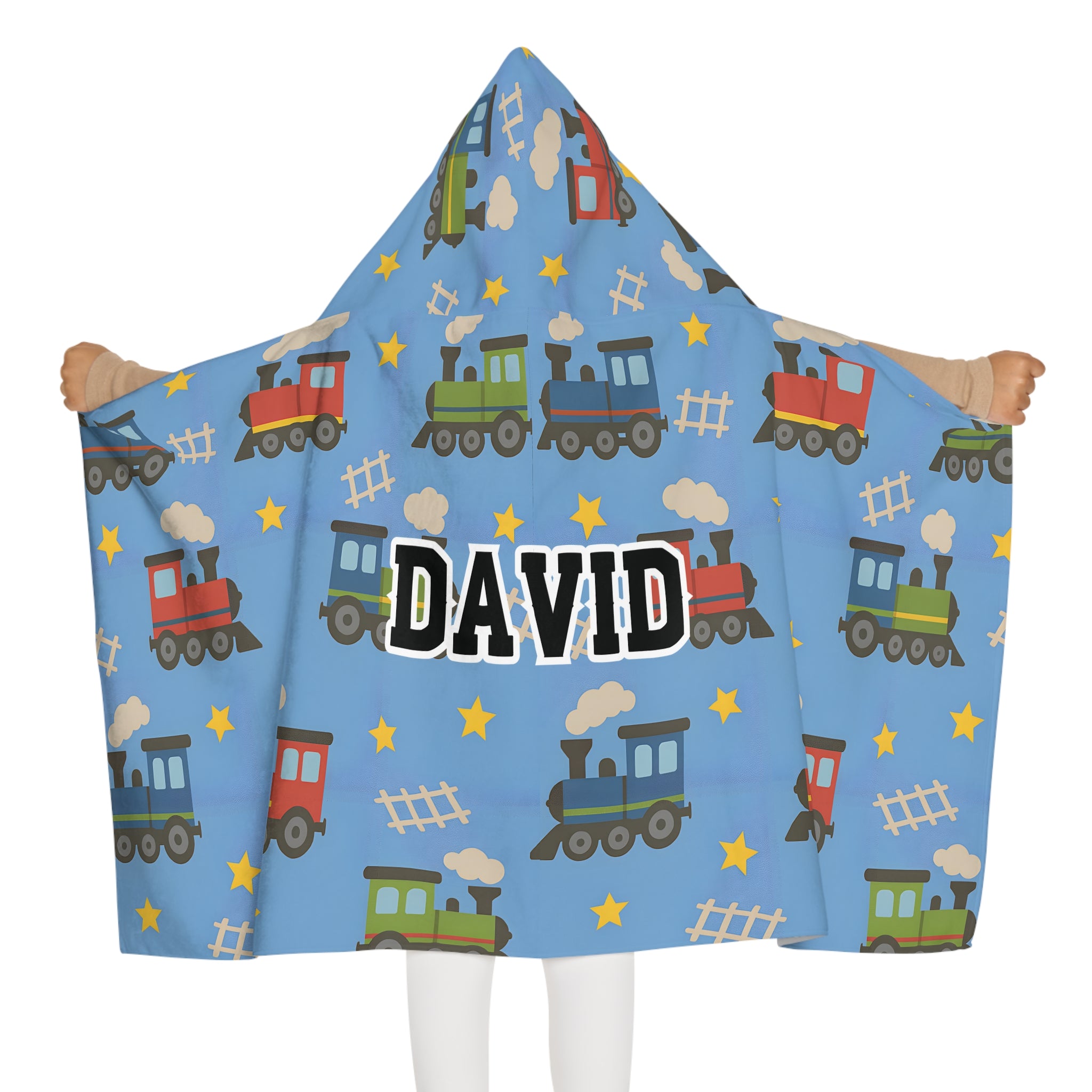 • Load image into Gallery viewer, Personalized Trains Hooded Towel