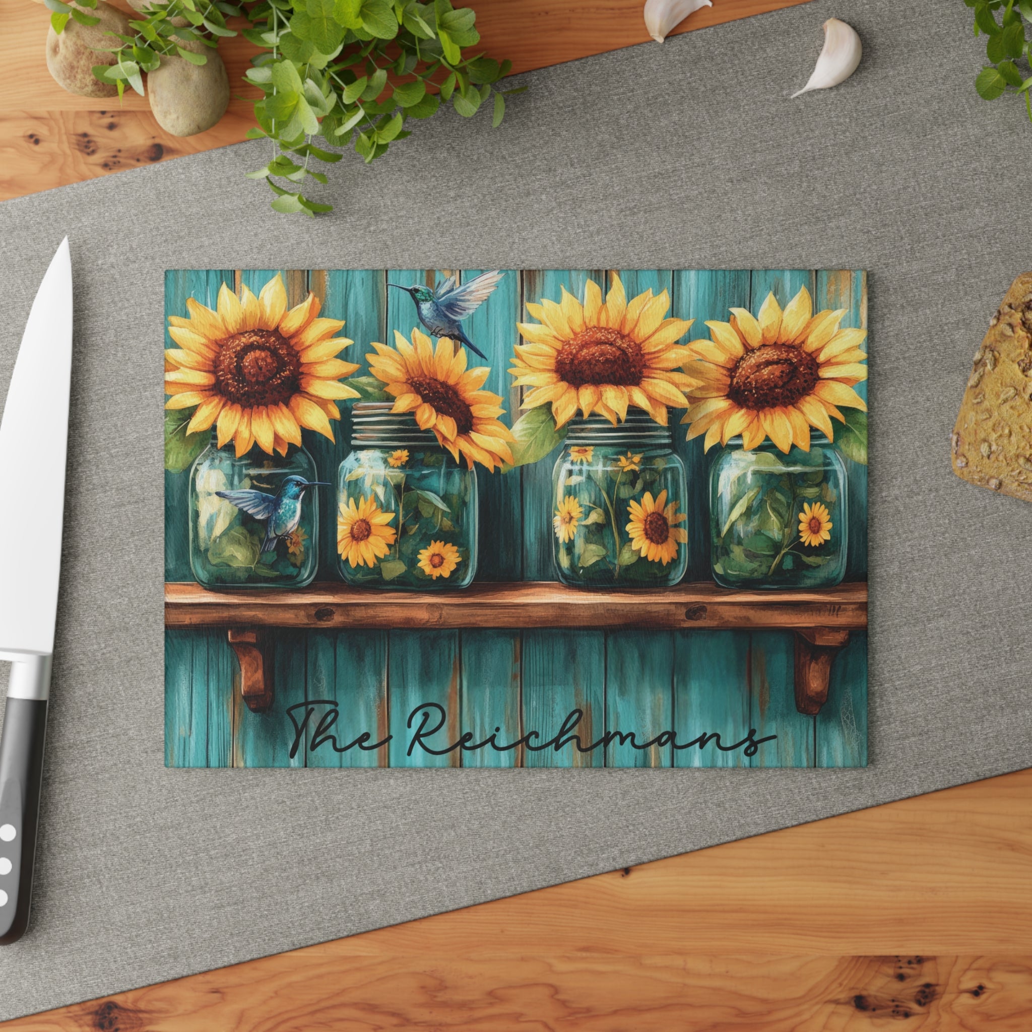 • Load image into Gallery viewer, Personalized Sunflower Glass Cutting Board